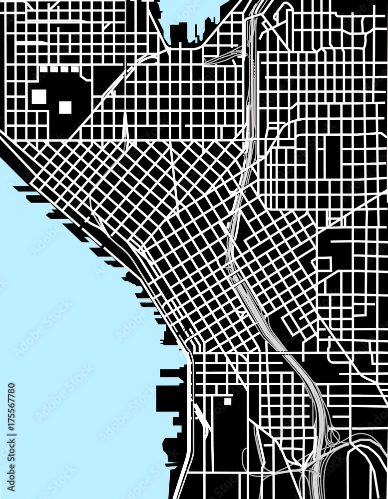 Obraz na plátně Seattle black and white vector map