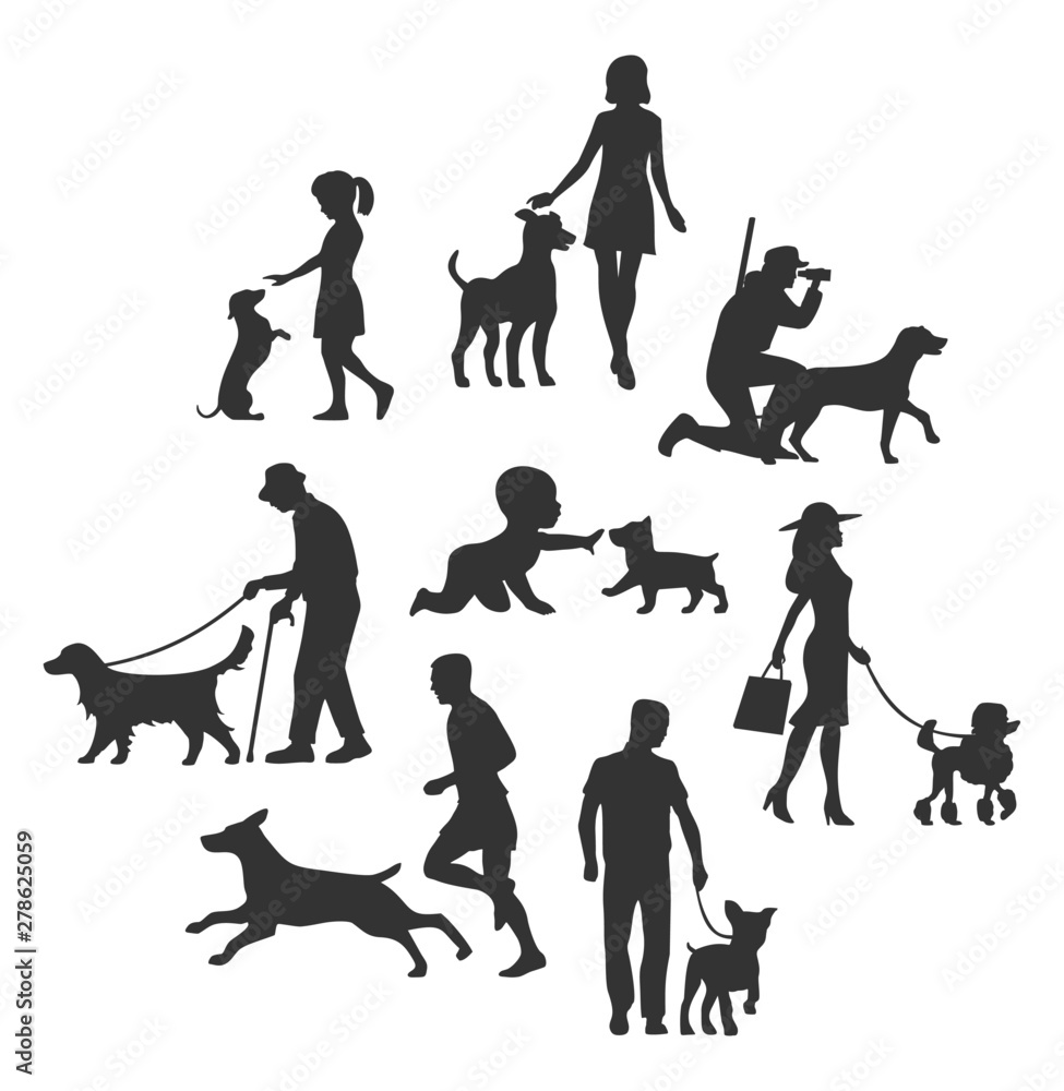 Obraz na plátně Set dog and people silhouette. Vector black flat icon