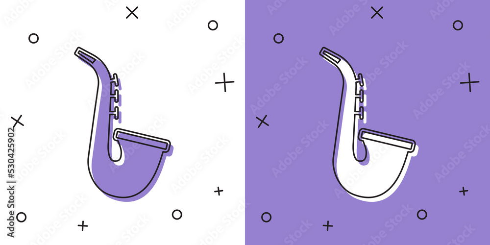 Fotografie Set Musical instrument saxophone icon isolated on white and purple background