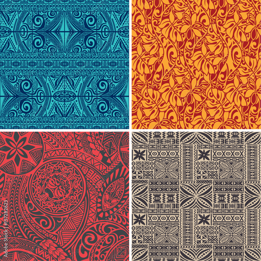 Fotografie Set of 4 vector seamless pattern in polynesian hawaiian style
