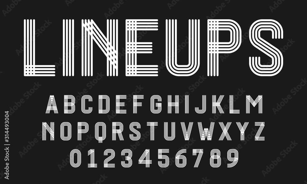 Fotografie Set of alphabets font letters and numbers modern abstract design with lines vect