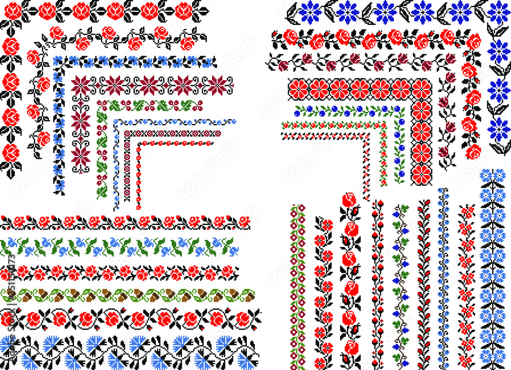 Obraz na plátně Set of editable traditional seamless ethnic patterns for embroidery stitch