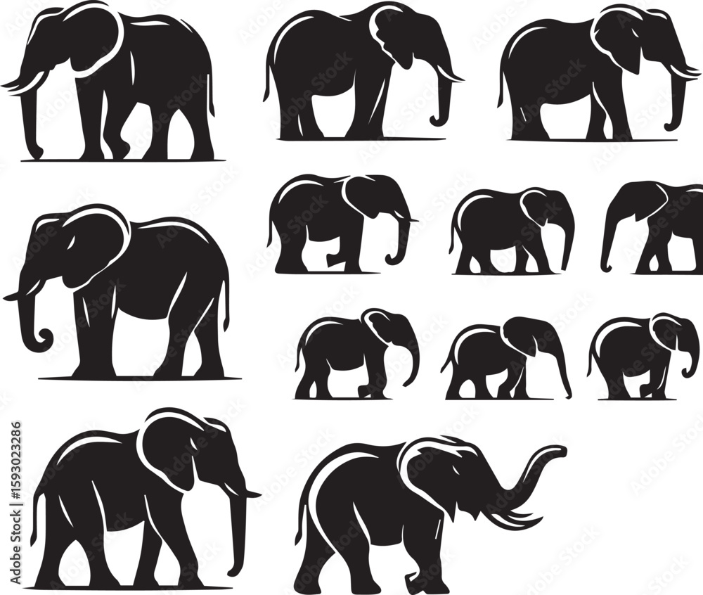 Fotografie set of elephants silhouettes vector