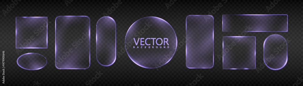 Fotografie Set of glowing neon frames in purple tones on transparent background