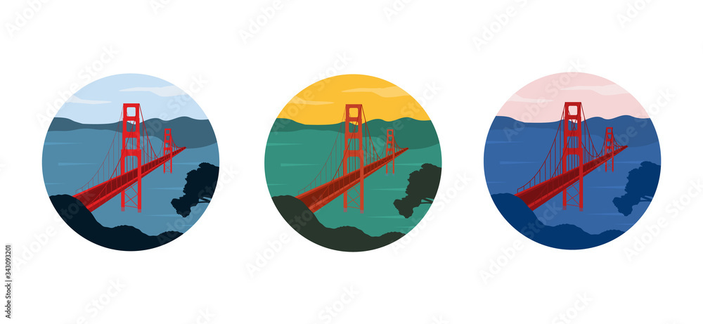 Fotografie Set of Golden Gate bridge illustrations in different colors shaped in round badge