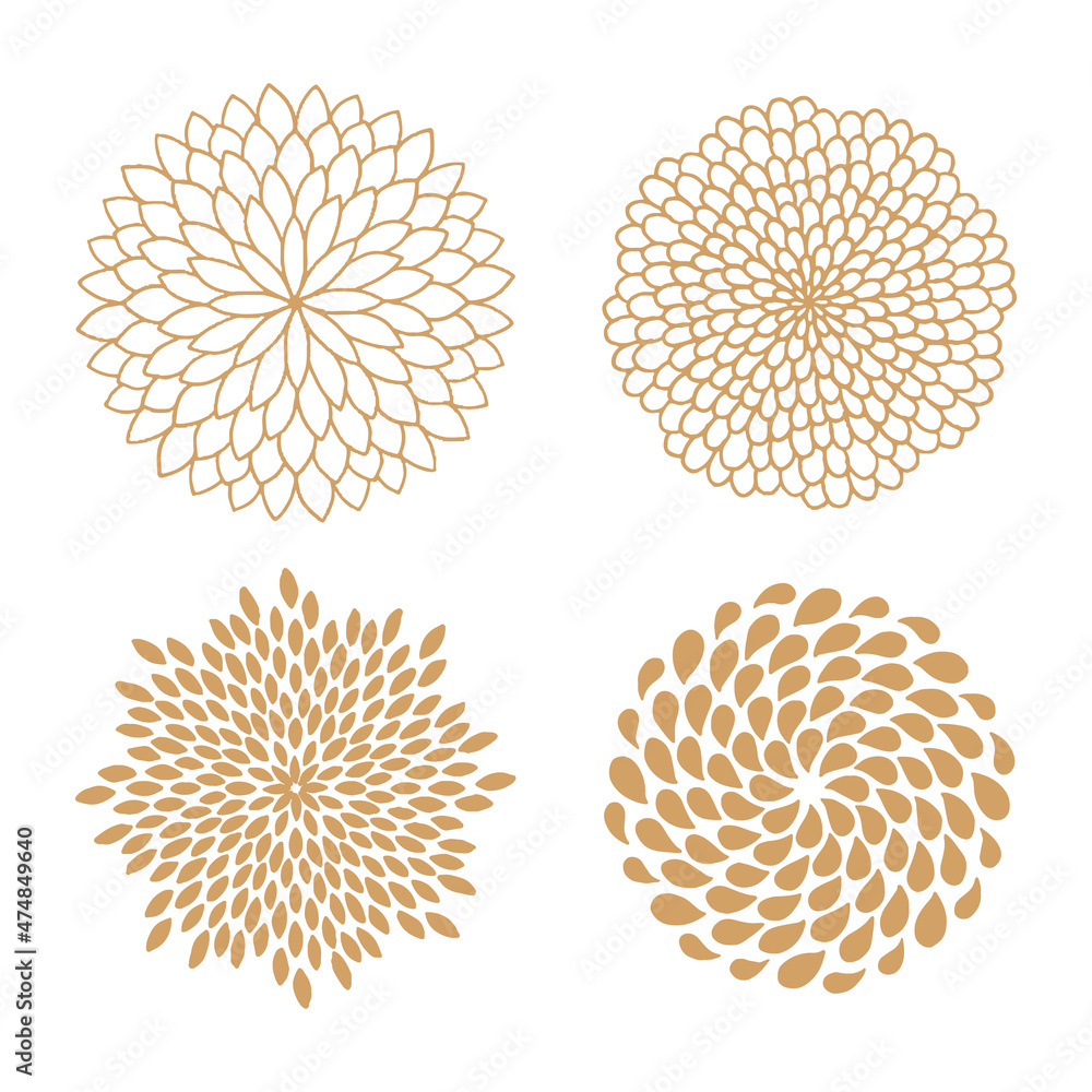 Obraz na plátně Set of symmetrical oriental floral design. Flat vector clip art
