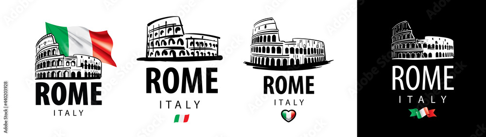 Fotografie Set of vector drawings of the Colosseum in Rome Italy