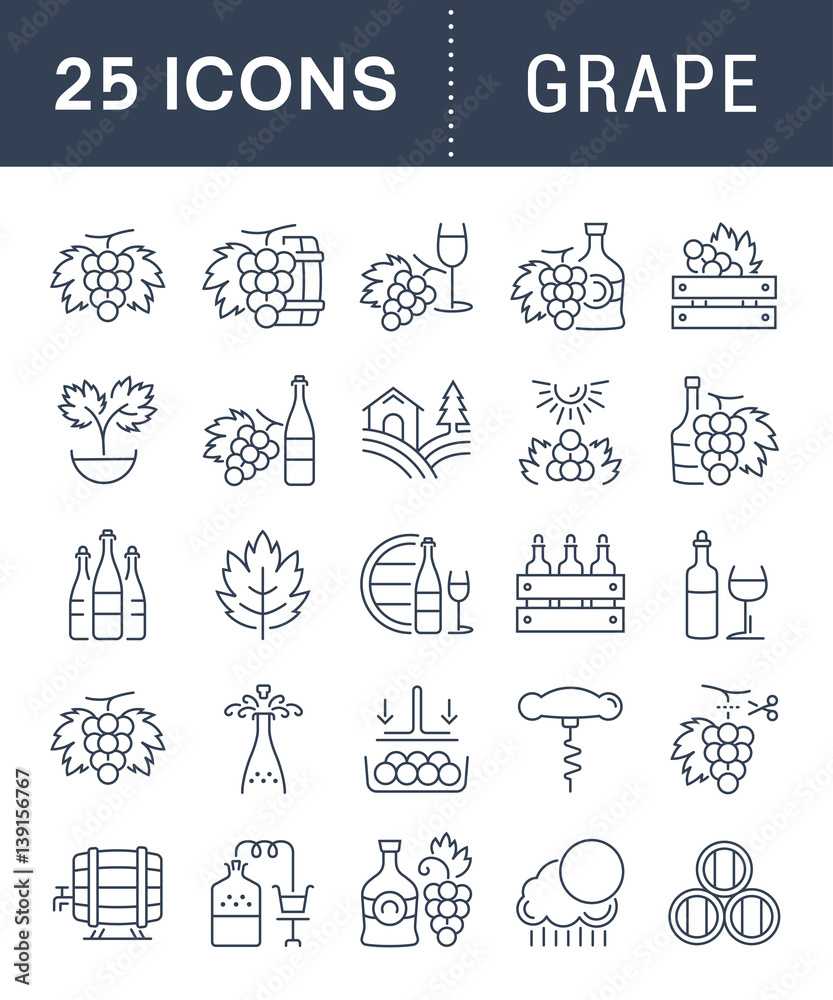 Obraz na plátně Set Vector Flat Line Icons Grape
