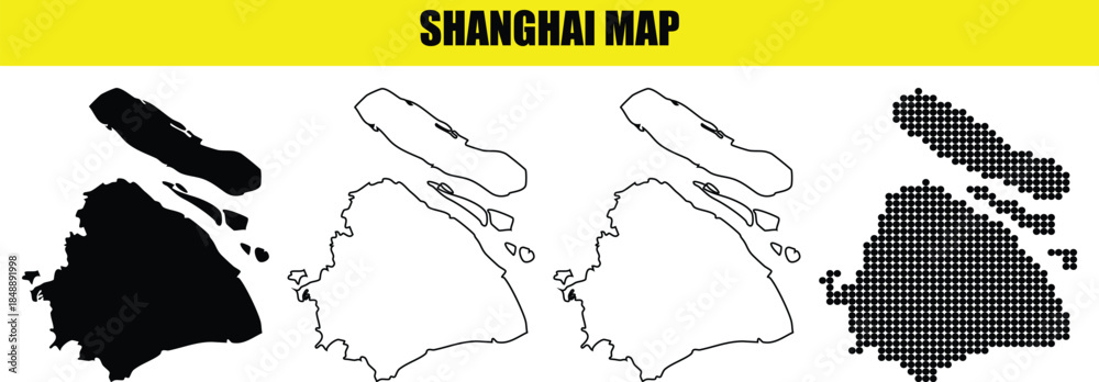 Fotografie Shanghai map vector drawing, solid color, outline, and dot map, shanghai map in