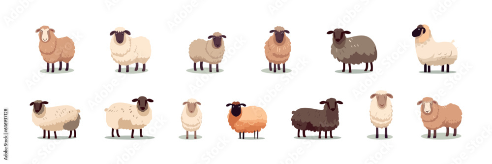 Fotografie Sheep set flat cartoon isolated on white background
