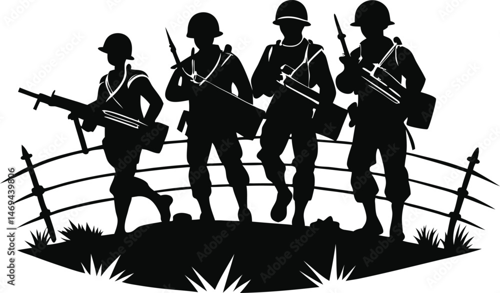 Fotografie Silhouette of Four World War Two Soldiers Walking