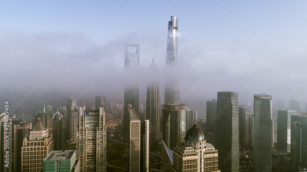 Fotografie Skyscrapers above the dramatic clouds in Shanghai