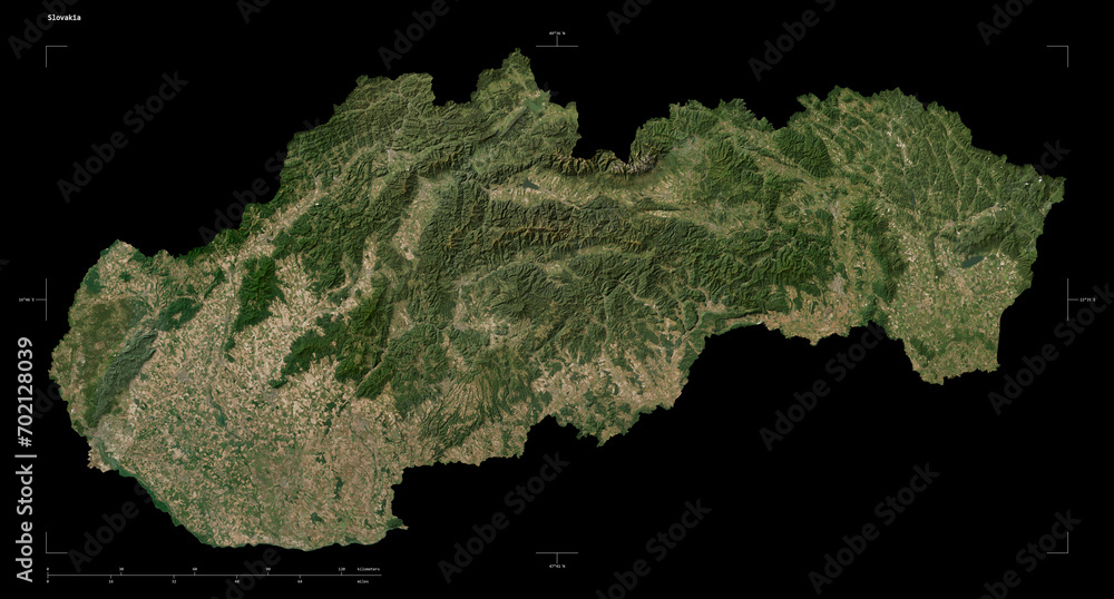 Fotografie Slovakia shape isolated on black. Low-res satellite map