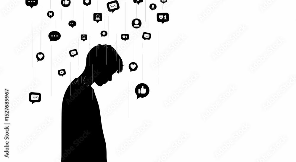 Fotografie Social Media Overload A Silhouette of a Person Overwhelmed by Notifications and