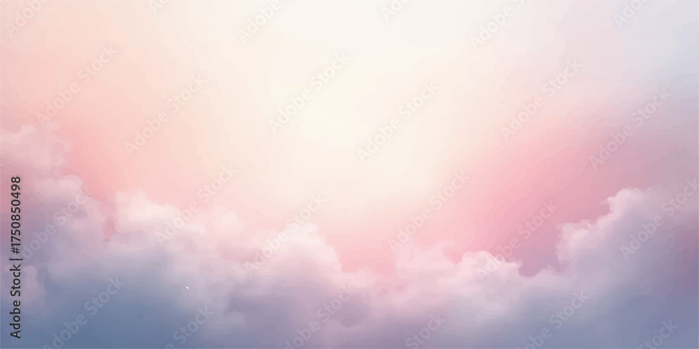 Fotografie Soft pastel pink and blue clouds illuminated by gentle sunlight creating a dream