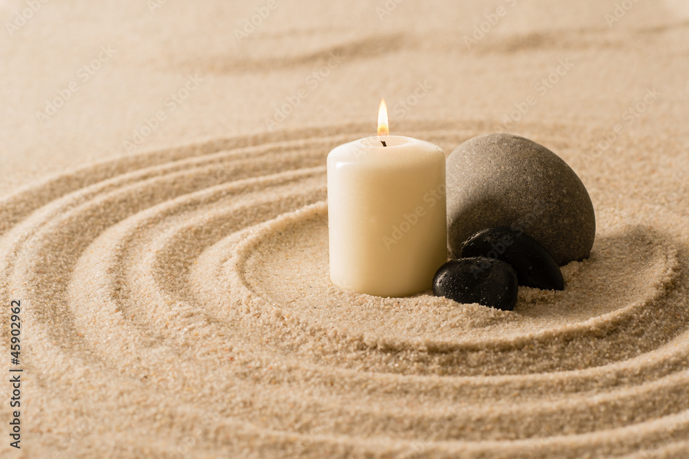 Fotografie Spa atmosphere candle zen stones in sand