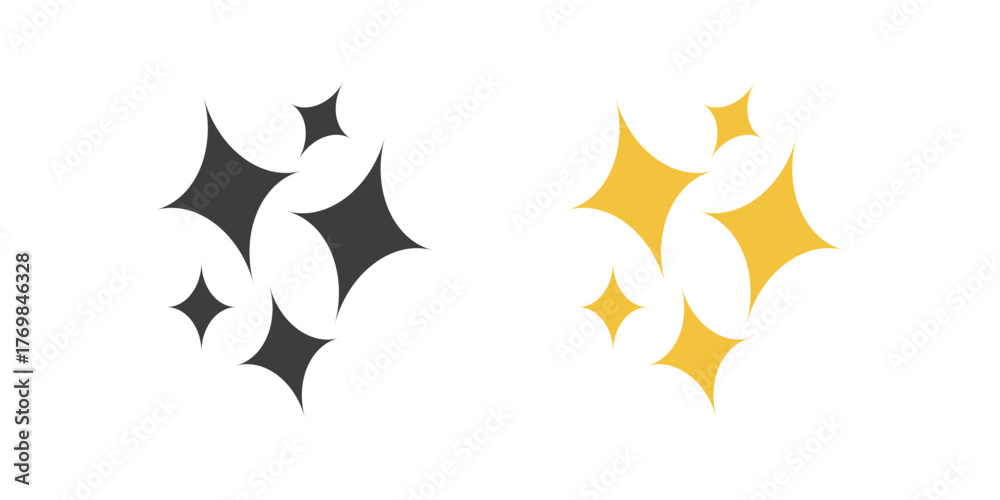 Fotografie sparkle, glitter, shine, stars sparkles icon set in black and yellow, symbolizing shine, glow, and brightness