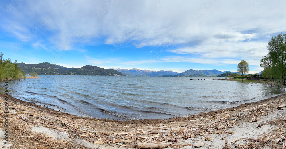 Obraz na plátně spiaggia sul lago maggiore in italia, beach on the lake maggiore in italy
