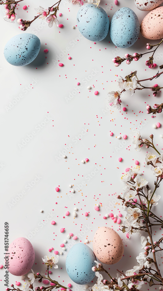 Fotografie Spring graphic with twigs, easter eggs in a nest