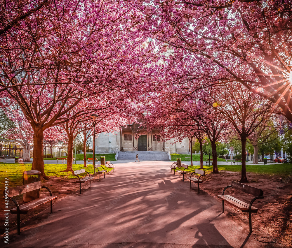 Obraz na plátně spring in the park with beautiful cherry blossoms