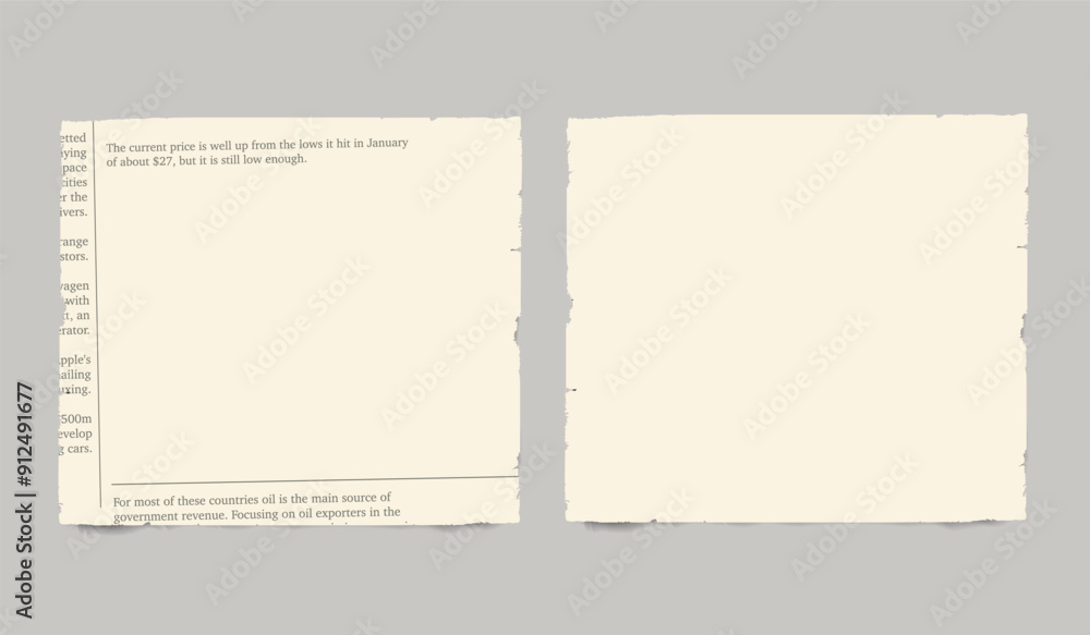 Fotografie Square pieces of torn newspaper with shadow on transparent background