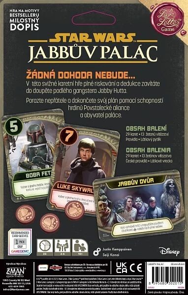 Star Wars: Jabbův palác je karetní hra postavená na mechanikách oblíbeného Milostného dopisu, avšak přináší několik nových prvků, které mění hratelnost. Na své si přijdou fanoušci klasické hry i Star Wars licence. Do rukou se vám dostanou ikoničtí hrdinové i záporáci, jako princezna Leia, Han Solo nebo samotný Jabba Hutt.