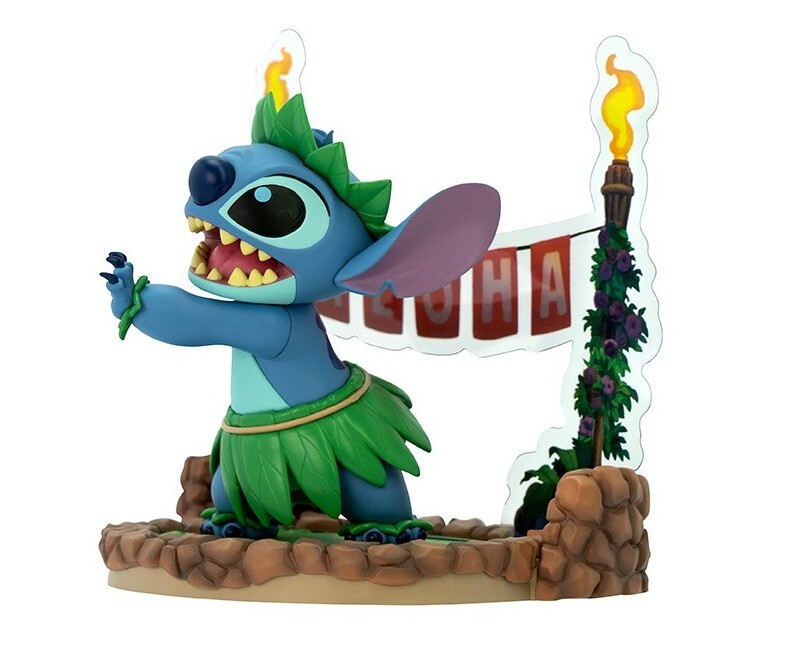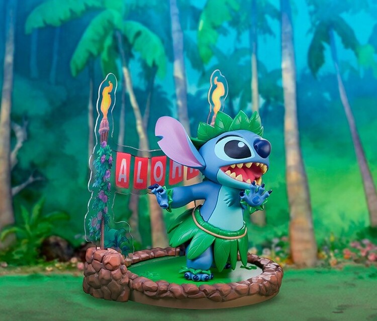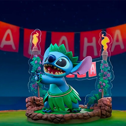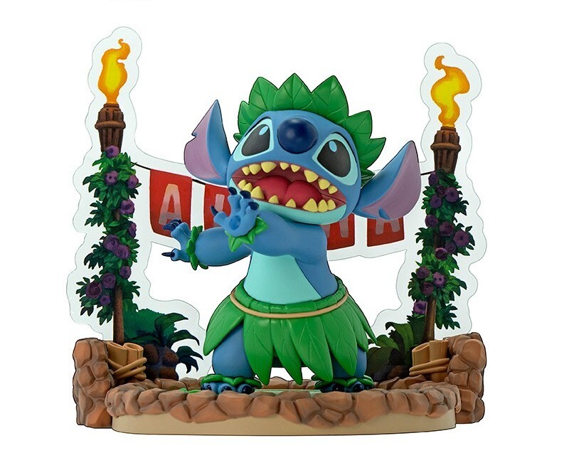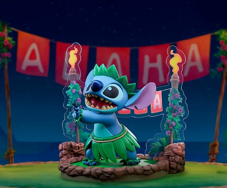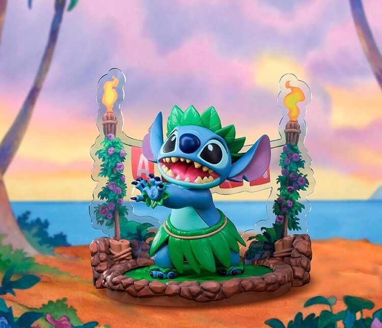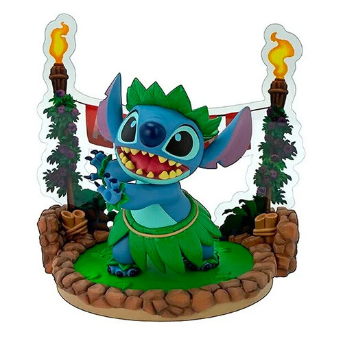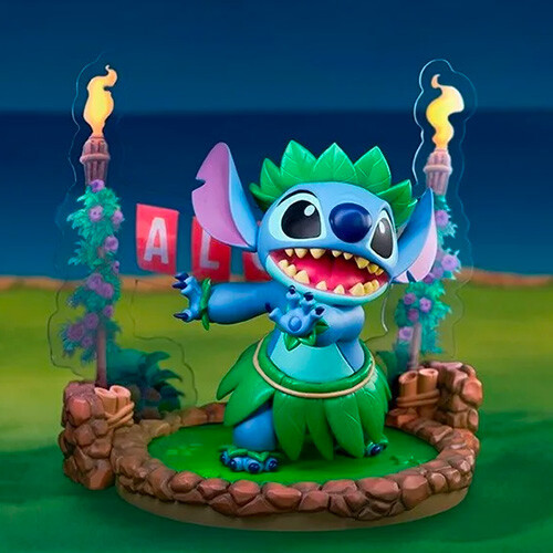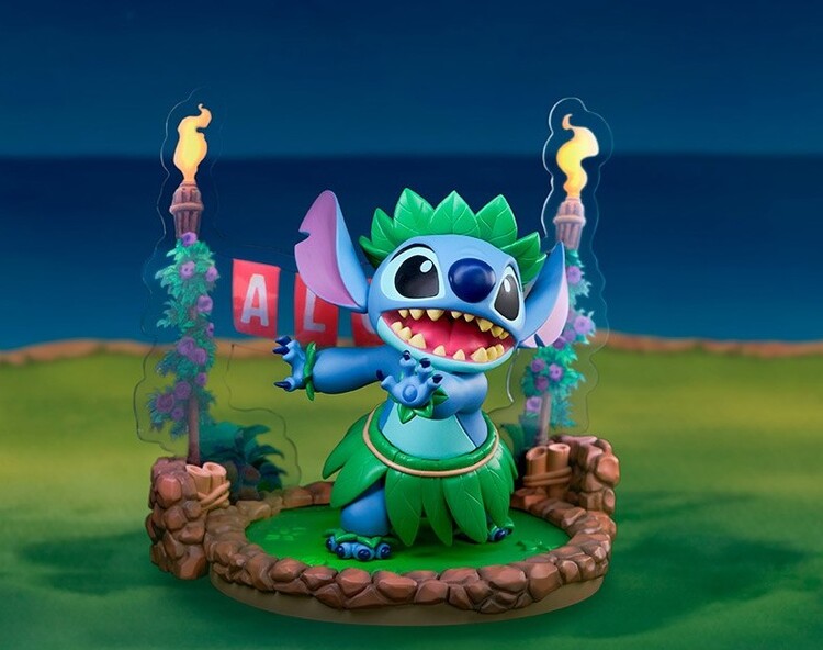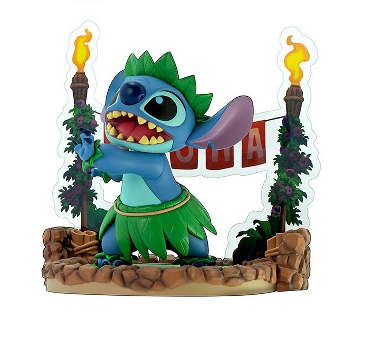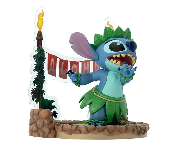Figurka Stitch při veselém tanci hula, v tradičním havajském oděvu. Tento kousek z kvalitního PVC má výšku přibližně 10 cm.