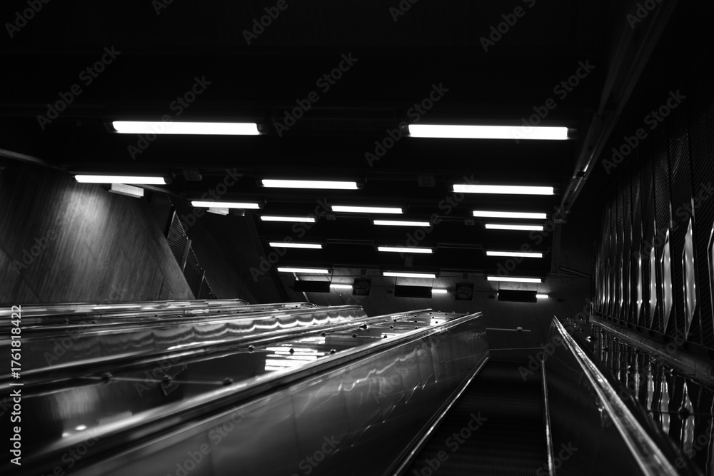 Fotografie Stockholm City subway station escalator, trains and passenger
