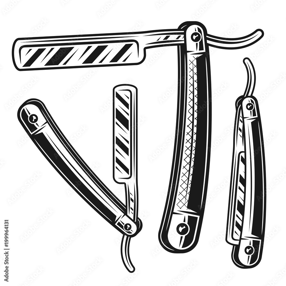 Fotografie Straight razor set of three styles vector objects