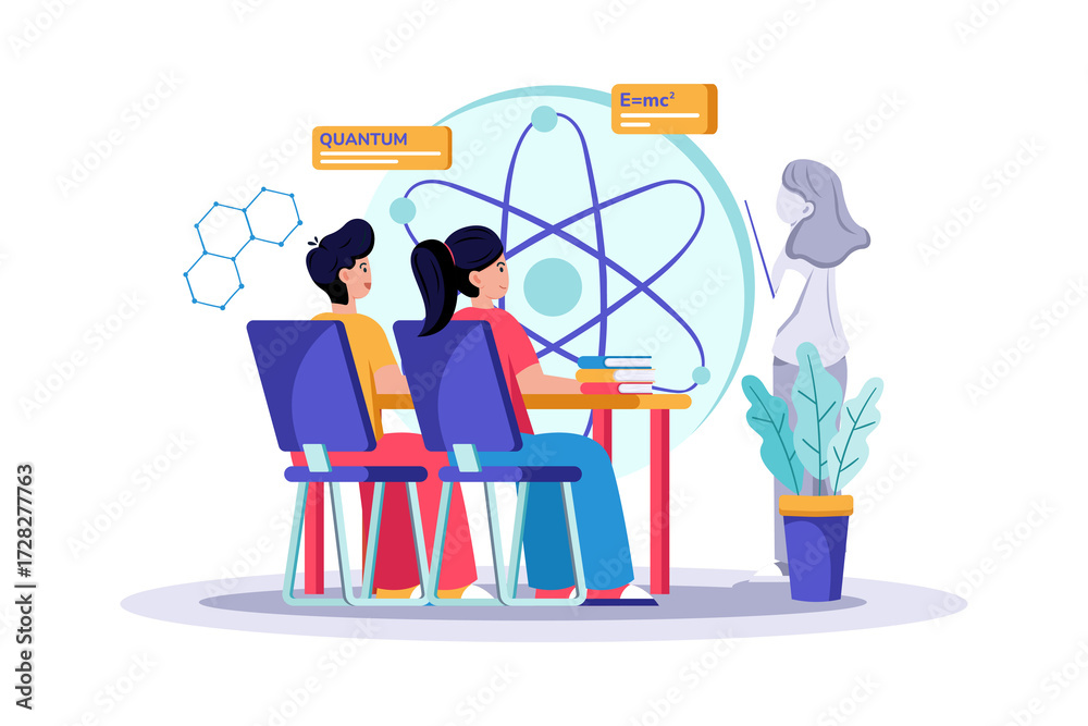 Fotografie Students Attending Chemistry Class with Atomic Model on Transparent Background C