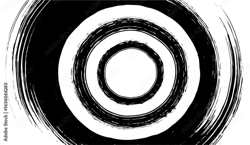 Fotografie Stylized black and white concentric circles are layered with a grunge texture, e
