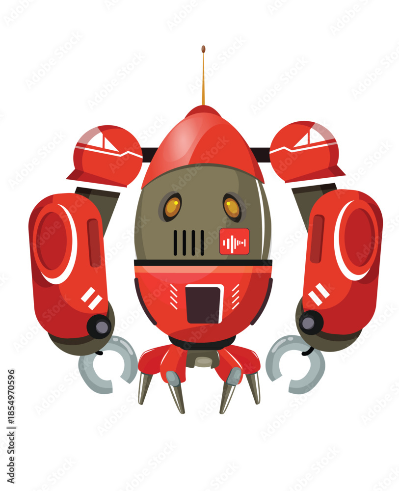 Fotografie Stylized Spherical Droid Character with Antenna and Multiple Legs, The droid is