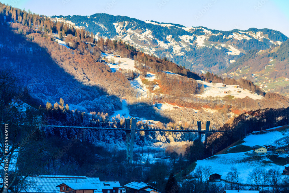 Fotografie Sunniberg bypass bridge (Sunnibergbrucke) over the Landquart river in Graubunden