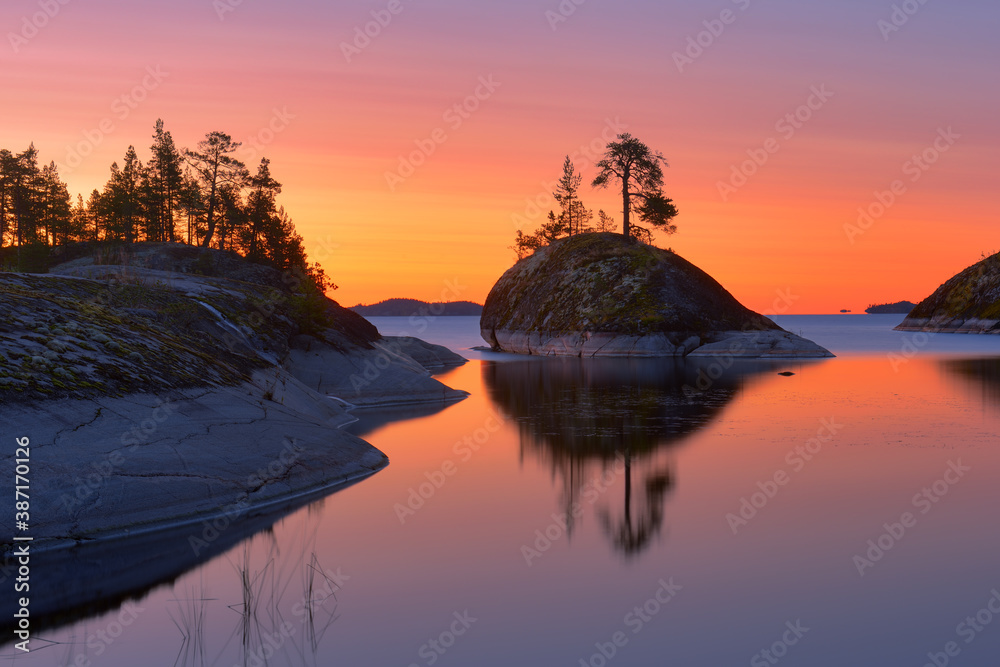 Fotografie Sunny morning on the rocky Islands of lake Ladoga
