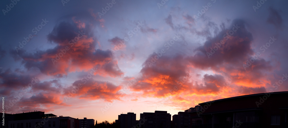 Fotografie Sunset panorama sky and vibrant clouds