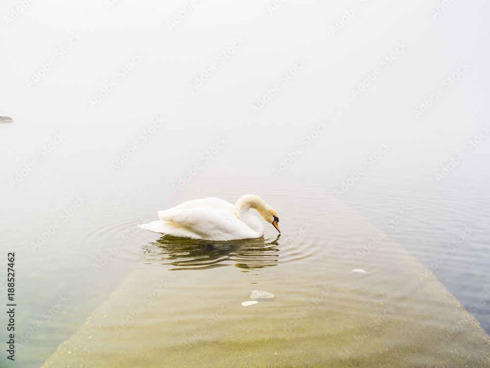 Fotografie swan in the lake, Lake Maggiore, Ispra, Varese, Lombardy, Italy