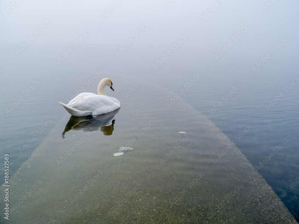 Obraz na plátně swan in the lake, Lake Maggiore, Ispra, Varese, Lombardy, Italy