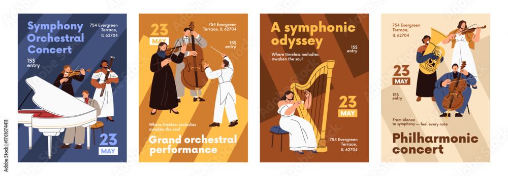 Obraz na plátně Symphony orchestra event posters set
