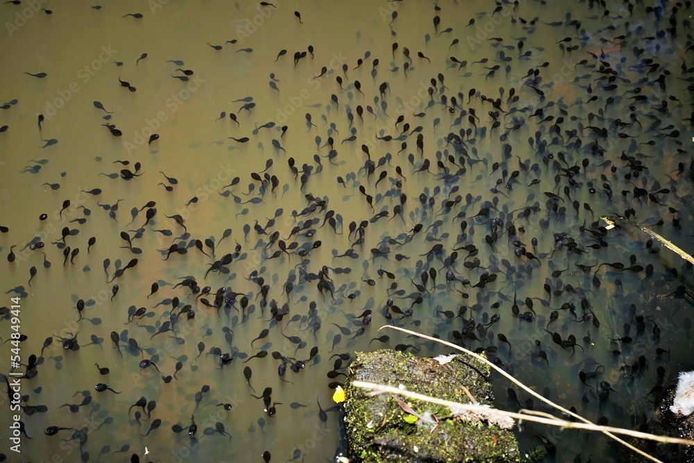 Obraz na plátně Tadpoles swarm in a pond