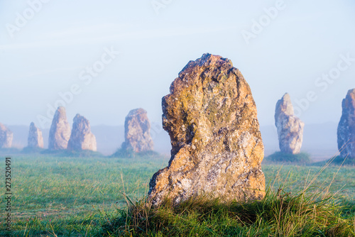 Obraz na plátně Fantastic Sunrise Scene with Fog Over