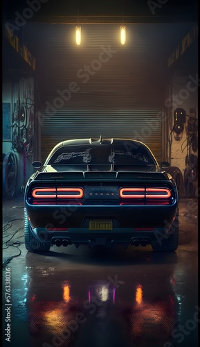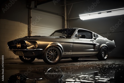Obraz na plátně Classic black car in garage