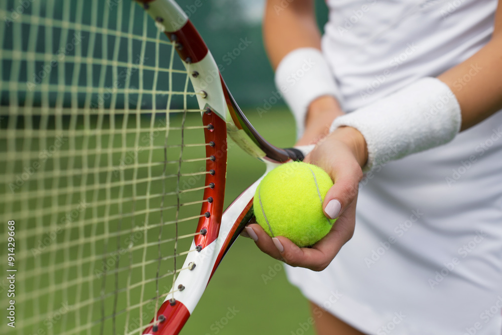 Tennis player holding racket and ball in hands