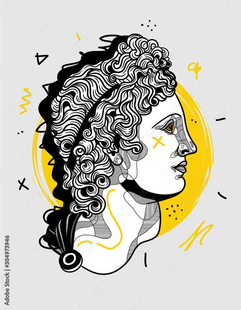 Obraz na plátně The Apollo Belvedere sculpture. Creative geometric yellow style.