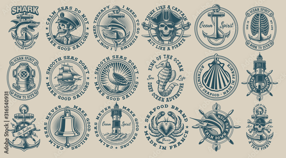 Fotografie The biggest bundle of vintage nautical vectors