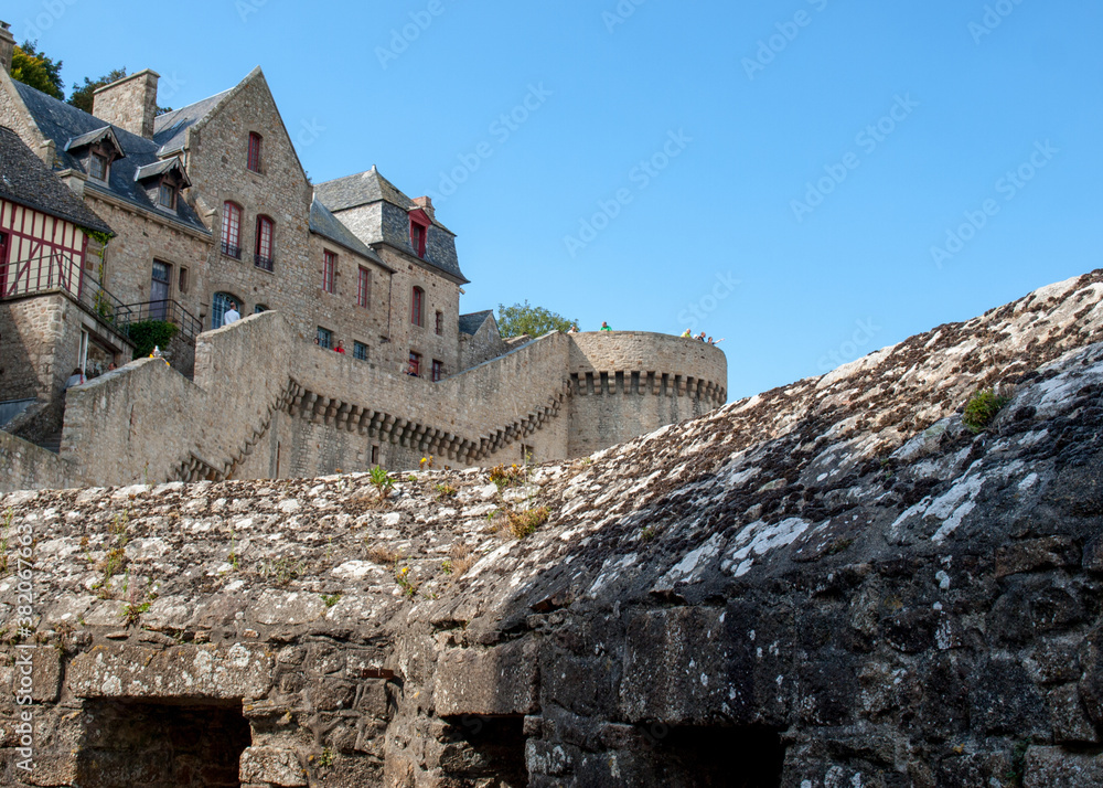 Fotografie The defensive walls of Mont Saint Michele, having a broad top with a walkway and typically a stone parapet