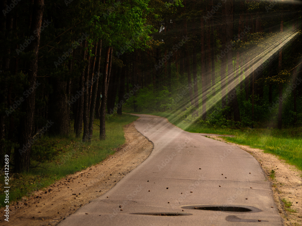 Fotografie The road into woodland at sunset