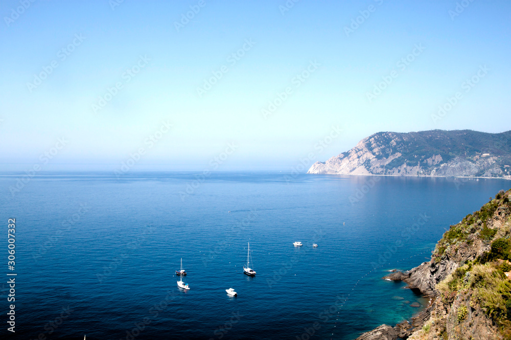 Fotografie The sea of Monterosso, Italy with boats