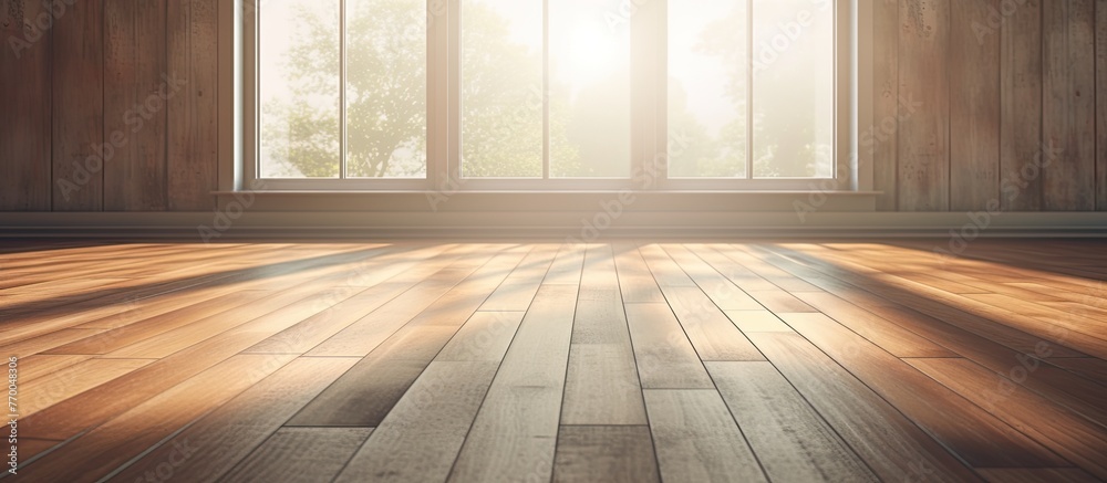 Fotografie The sunlight is streaming through the rectangular window, illuminating the wooden floors of the empty room