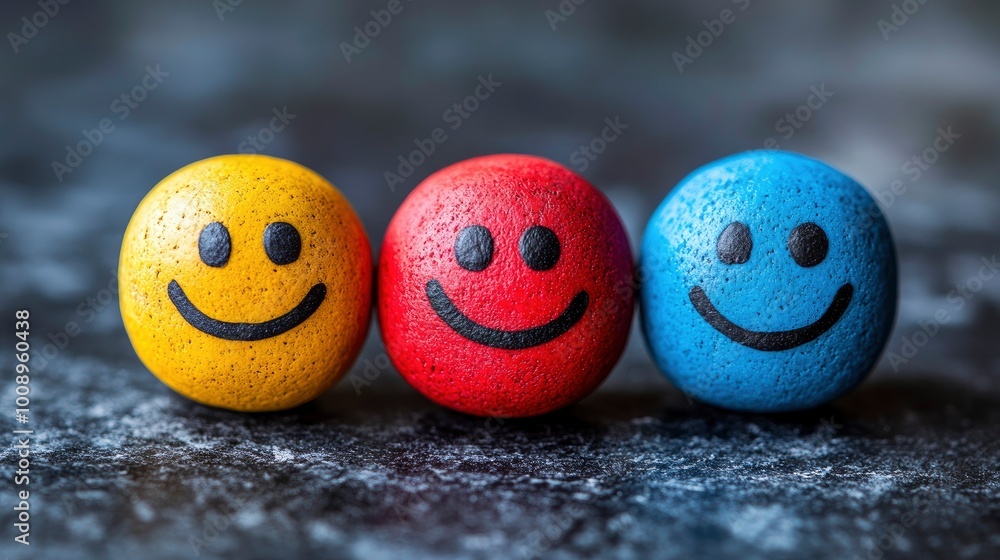Fotografie Three Smiling Balls in Yellow, Red, and Blue
