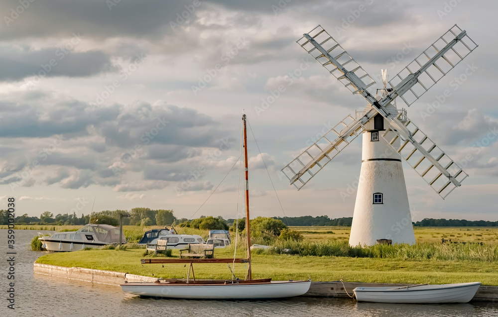 Fotografie Thurne Mill on the waterside of Thurne River mouth in the Norfolk Broads Nationa